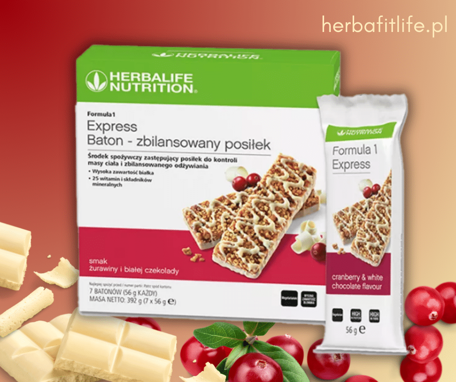 BATON ZASTĘPUJĄCY POSIŁEK – F1 Express Baton Herbalife – zbilansowany posiłek smak żurawina i biała czekolada 7 batonów